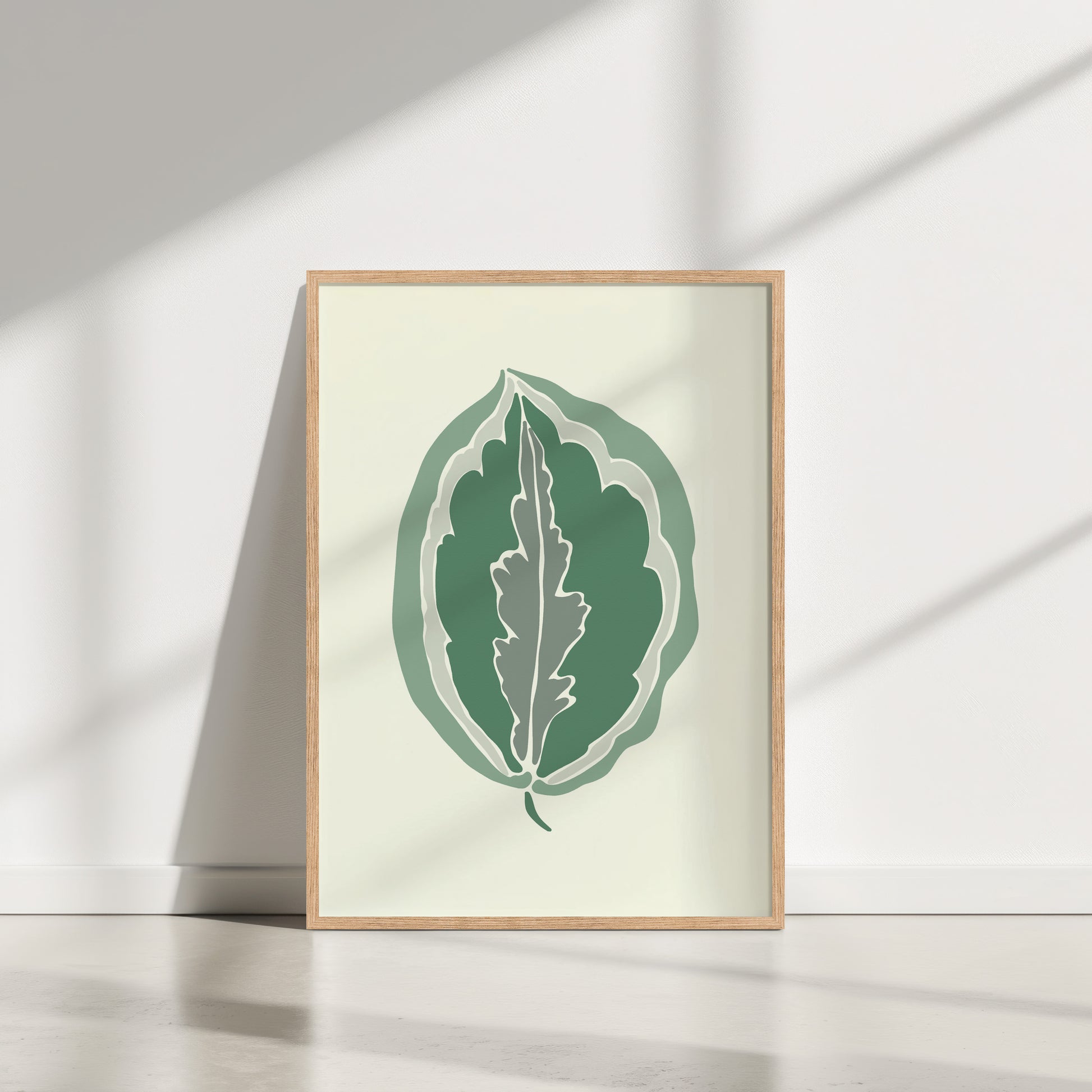 Haal de natuur in huis zonder groene vingers nodig te hebben, met deze Calathea Leaf print, een mix van botanische elegantie en modern design. Deze print is geïnspireerd door de iconische vormen van het blad van deze kamerplant, gecombineerd met zachte, aardse tinten. Perfect om je interieur nét dat beetje extra karakter te geven.