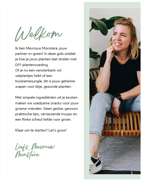 ✅Het e-book bevat 30 bladzijdes, 4 hoofdstukken en 10 DIY recepten voor kamerplantenvoeding.